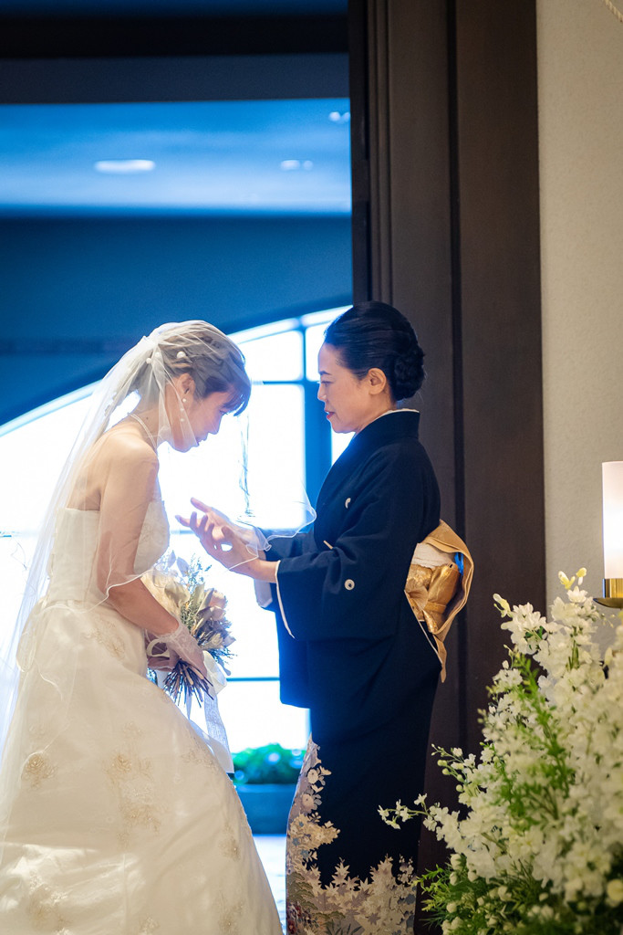 挙式では、M様がお母様にベールダウンをしていただいたり、リングガールをおふたりのお子様とY様の姪御様が務められるなど、家族の絆を感じさせる演出によってスタートしました。