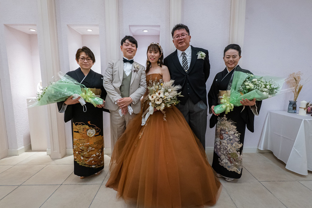 M様はテラコッタカラーのドレスで登場!