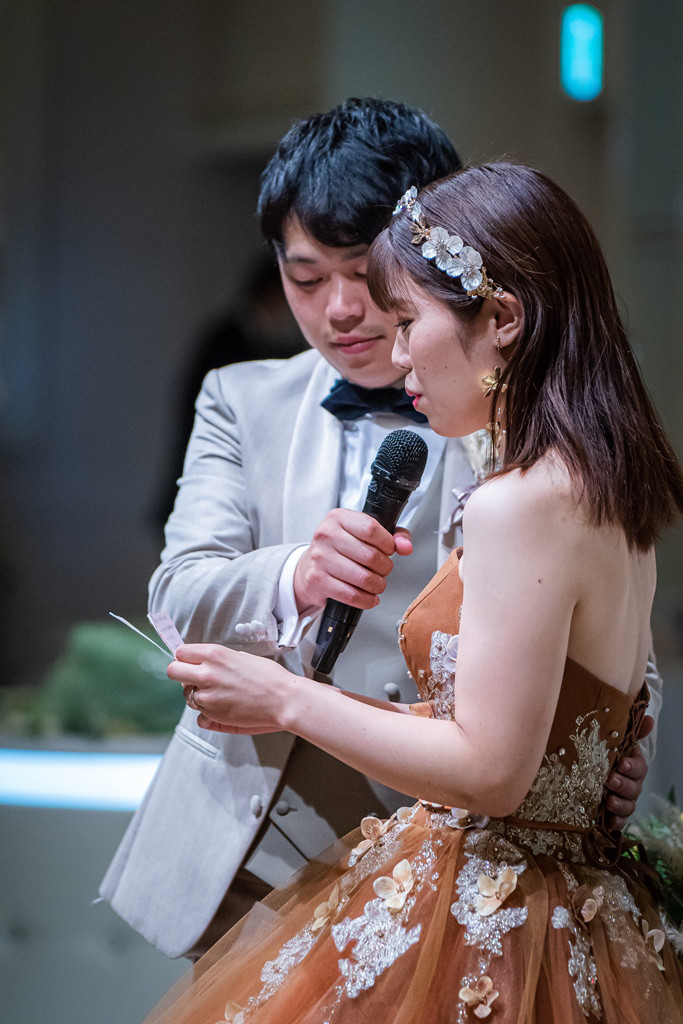 披露宴の結びにはM様から親御様へ感謝のお手紙が読まれ、続いてご両家の親御様へ、花束が贈られました。