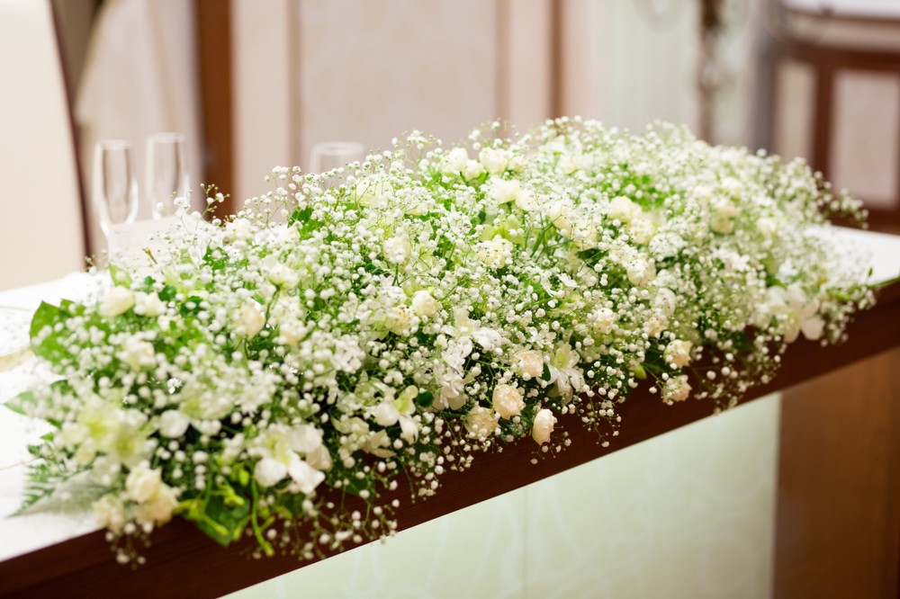 続く披露宴では、白とグリーンの夏らしくナチュラルコーディネートで彩ったおふたり。