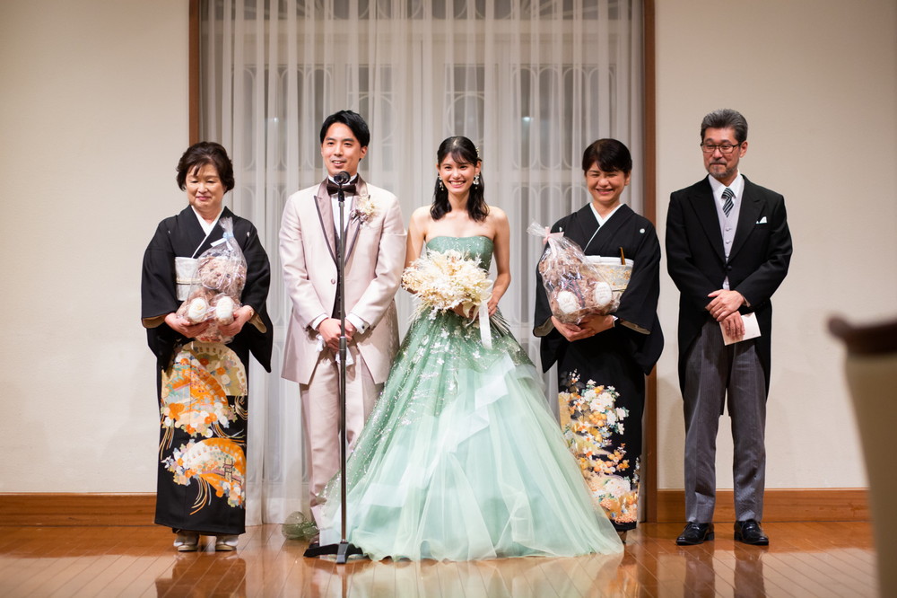 そしておふたりからそれぞれの親御様へ、記念品のウェイトベアが贈られました。