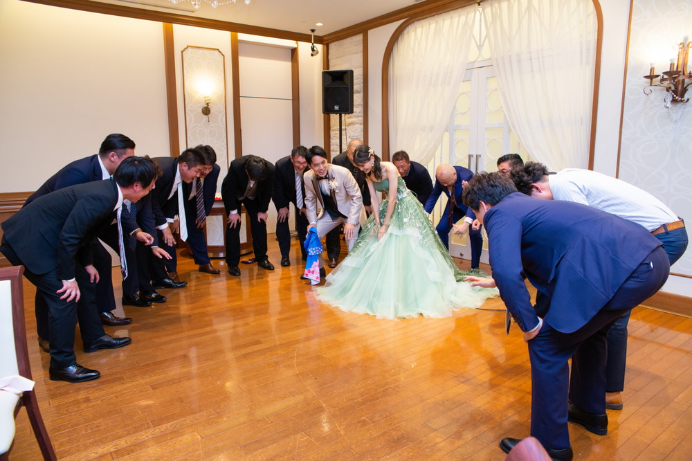 余興では、Y様のご友人様による歌の披露があったり、様のご友人様たちによるエールの円陣がありました。