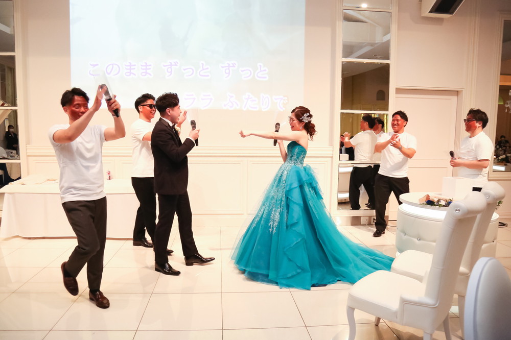 余興では、せいた様のご友人様からカラオケをご披露! 途中せいた様とりほ様もマイクを手に取り参加、会場の盛り上がりは最高潮!