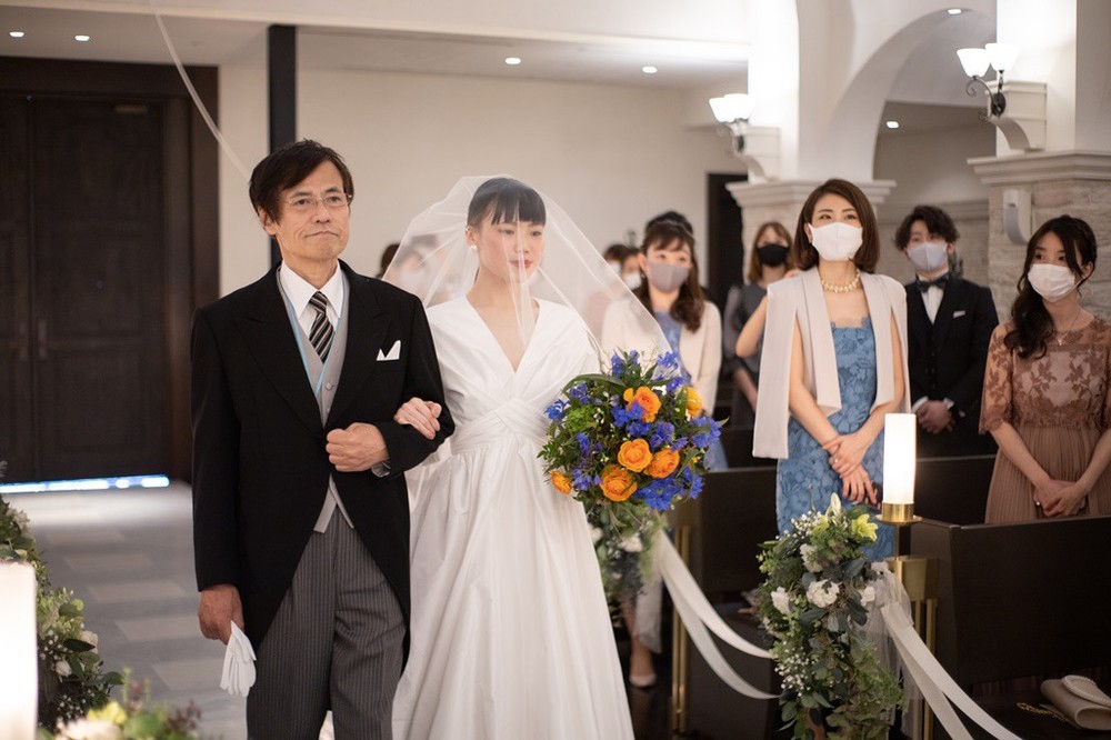 ちあき様は、お父様と一緒にチャペルにご入場。