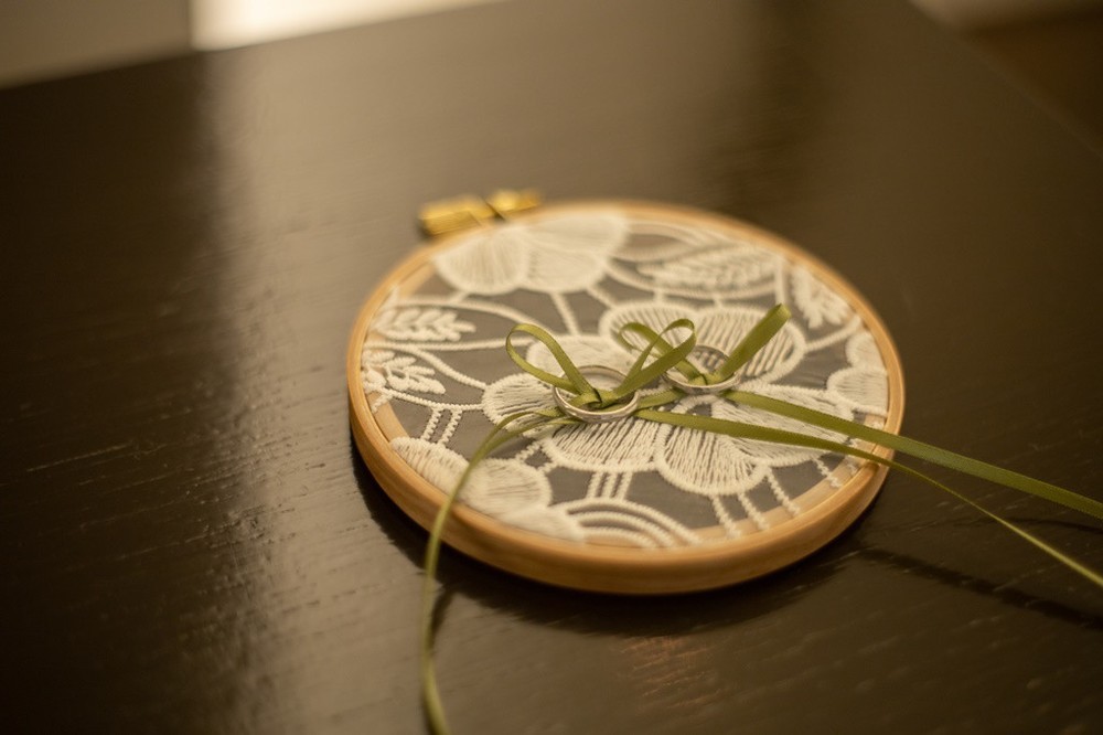 指輪交換のシーンでは、手作りのリングピローをお使いになり、より思い出深い瞬間を迎えられたようです。