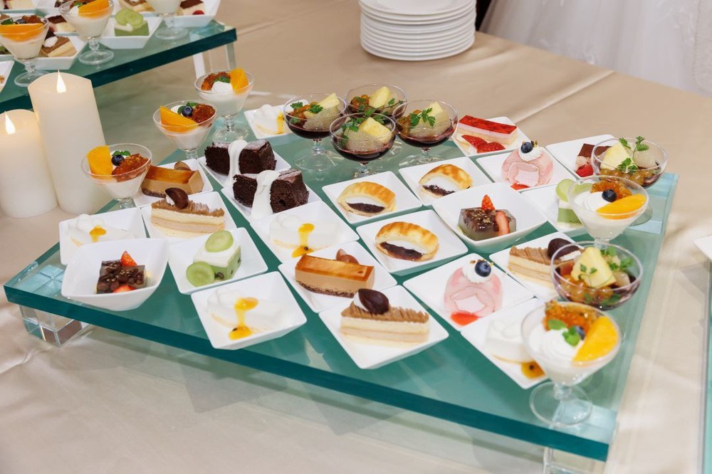 おふたりからのおもてなしのお気持ちを込めて、デザートブッフェではおふたりが直接ゲストにお渡しになられました。