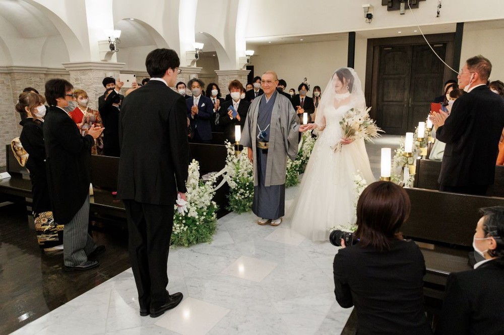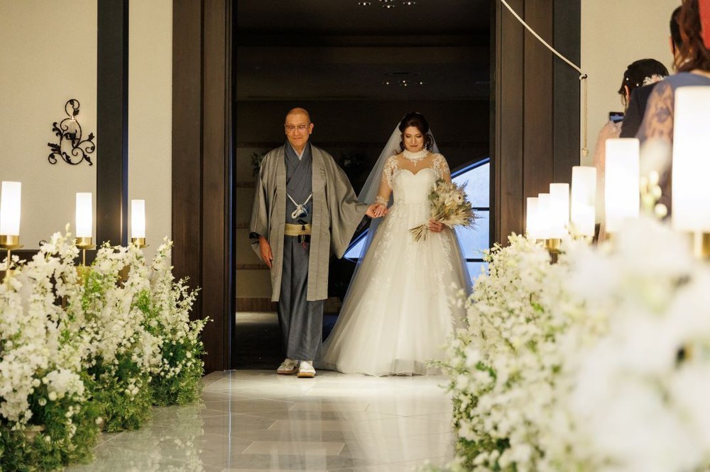 そのバージンロードをお父様とゆっくり進まれました。