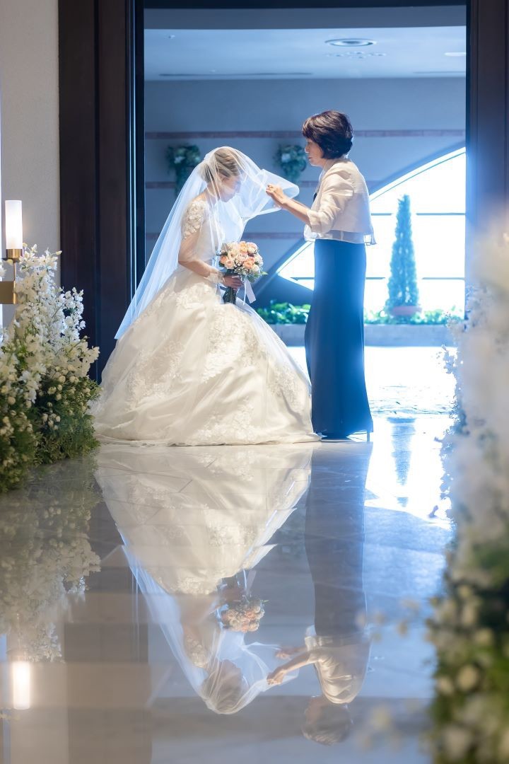 A様はお母様にベールダウンをしていただき