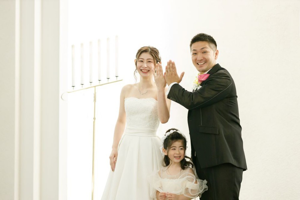 おふたりの間からお顔を出すお子様がとても可愛いですね♪