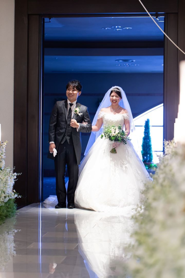 入場の際は、扉が開きゲスト皆様のお顔を見てお二人とも笑顔が溢れました。