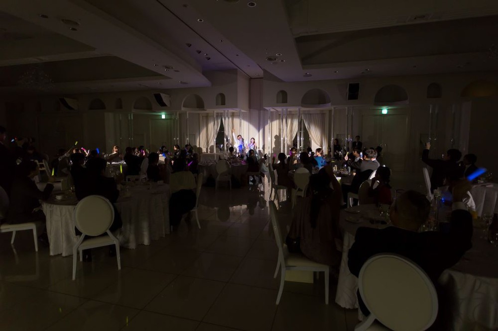 ゲストの皆様にはドレスの色当てクイズで予想された色のペンライトを持っていただきました。
