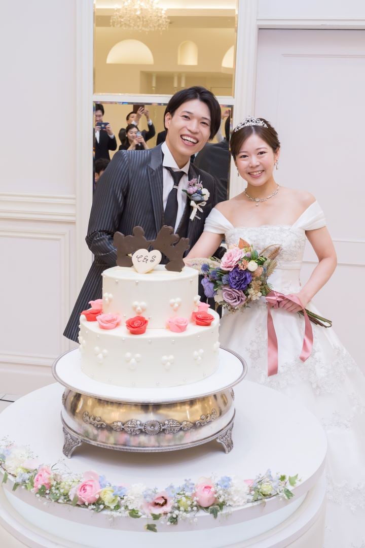 ケーキ入刀の演出では、入刀すると見せかけて入刀前におふたりで曲に合わせてダンスを披露しファーストバイトは交互に行い、T様が頑張って食べる様子に会場は盛り上がりました。
