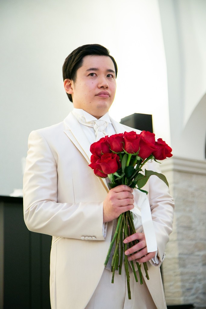 そしてよっちゃん様は、贈られた花束の中からブートニアをお返し。