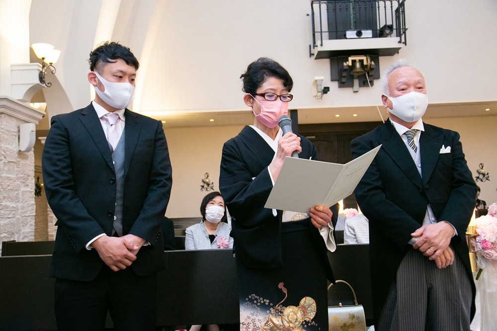 オリジナルの誓いの言葉は、ご両家のご家族からの問いかけに、ふみ様&よっちゃん様が応える形で行われました。