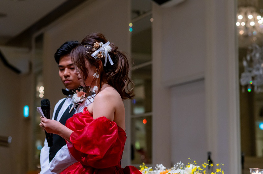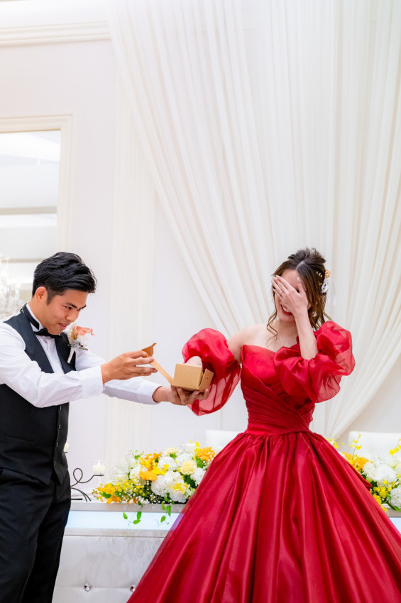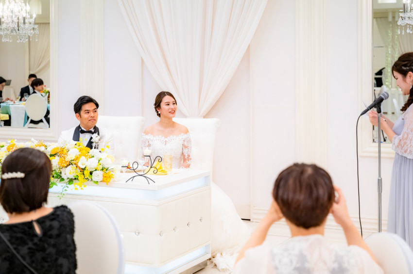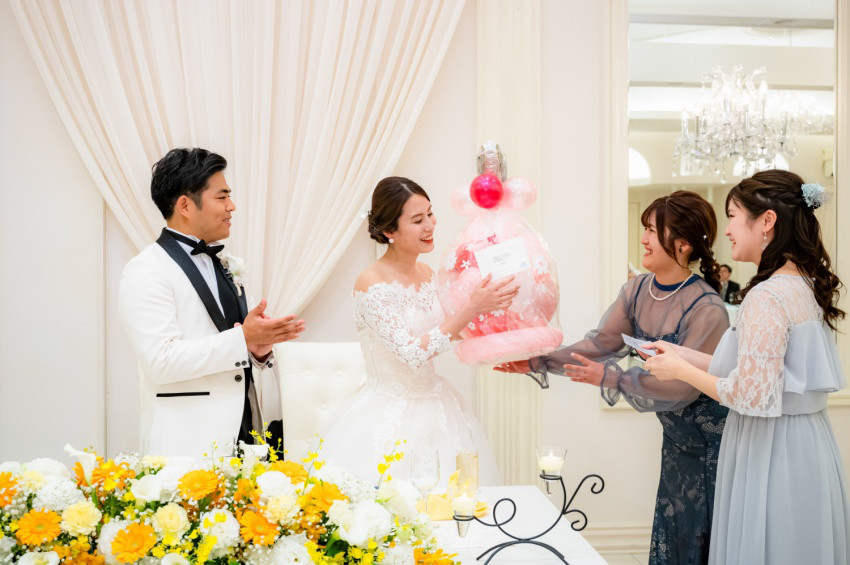 H様のご友人様からお祝いのスピーチをいただき、その後はご友人様から可愛いプレゼントを受け取りました。