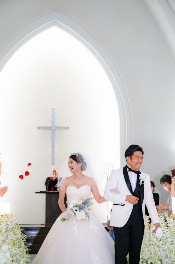 退場の際はゲストの皆様からの祝福を受け、笑顔が溢れるR様とH様でした。