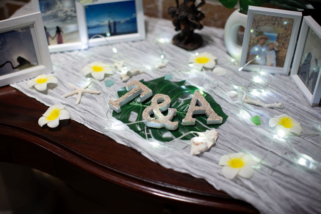 沖縄にお住まいのおふたり、海をモチーフとしたアイテムも。