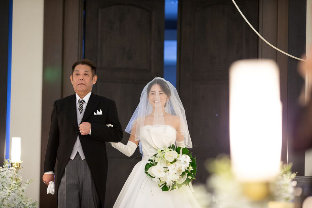 お父様とバージンロードを歩まれました。