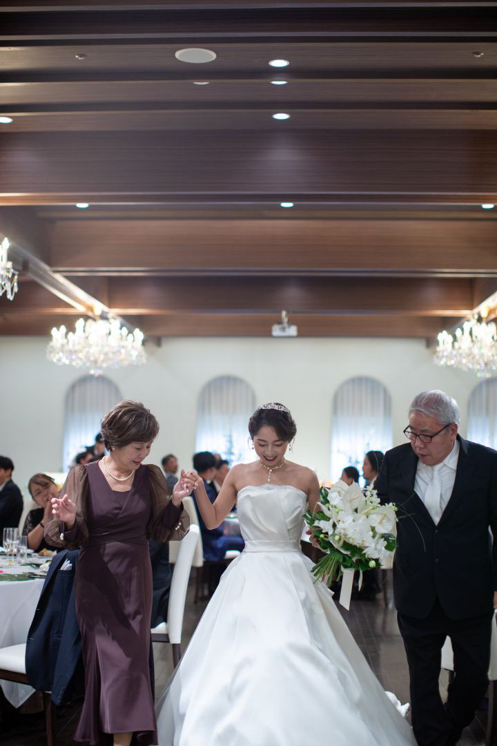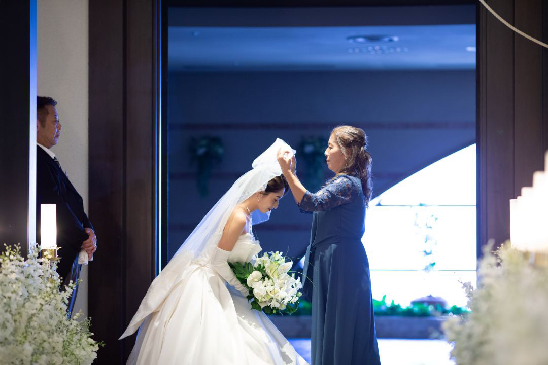 K様は入場の際、お母様よりベールダウンをしていただき