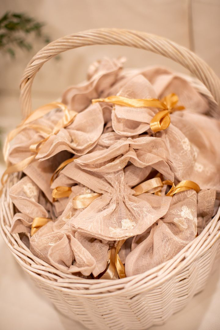 お見送りの際、プチギフトとして手作りされた布にお菓子を入れて渡されました。